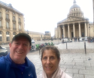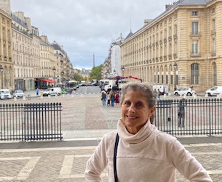 Friday night, erev Shabbat and Sukkot, was very special as we were invited to join new friends, Kenden and Charles and their daughter Yael for Shabbat dinner at their beautiful apartment in the 17th arr. Our hosts mentioned that their arrondissement includes a large Jewish population, 40,000 out of the 300,000 Jews living in Paris and its suburbs. Their work has brought them all over the world and they have now settled in Paris after living in Cambodia where they started a school. We lit candles, sang, recited prayers and dined on a terrific and healthy meal. Our hosts have a tradition of reading and discussing the essays of the Lord Rabbi Jonathan Sacks, z”l, on Shabbat. We read about the debate over the importance of Sukkot and the Sukkah and recited some traditional prayers after the meal. Kenden is a published cookbook author so after dinner she shared her books with us. The picture below is one of Kenden’s, cookbooks. There are recipe contributions of Jewish women from all over the world; this book also weaves in stories from the Talmud. And yes, Andy and Charles did discuss their shared experience as synagogue treasurers.