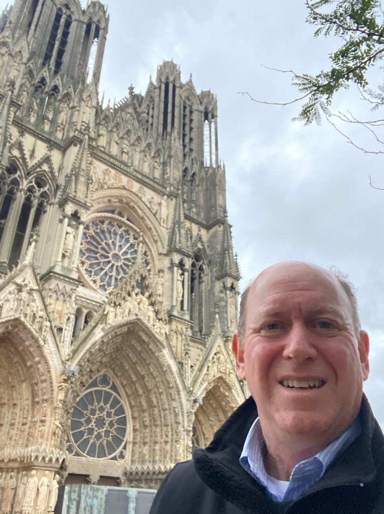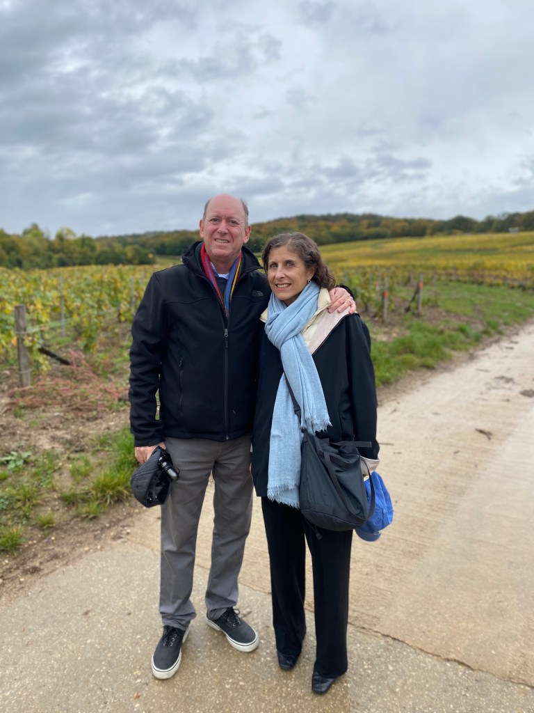 On Monday, Andy and I celebrated our thirtieth wedding anniversary! Seems like yesterday when it poured all day and everything was running late but we had a wonderful wedding and are still having a loving marriage. In honor of this special day, it poured all day, just like October 30, 1993, but Andy had arranged an outing to champagne country. We took a high speed train to Reims (pronounced “rance” 🤷♀️) and visited Champagne A. Margaine, a small family-owned artisan winemaker. Our tour was with Mathilde, the next in line and fifth generation of Margaines. Mathilda’s English was excellent — she spent some time living in Williamsburg, Brooklyn while repping some French wineries. We won’t find this champagne in US retail stores but it has been on the wine list of top NY restaurants like Eleven Madison Park and Jean-Georges. After a spectacular lunch at Brasserie Le Jardin at Domaine Les Crayères, we needed a bit more bubbly so off we went to Ruinart, the Première Maison de Champagne and now part of LVMH.