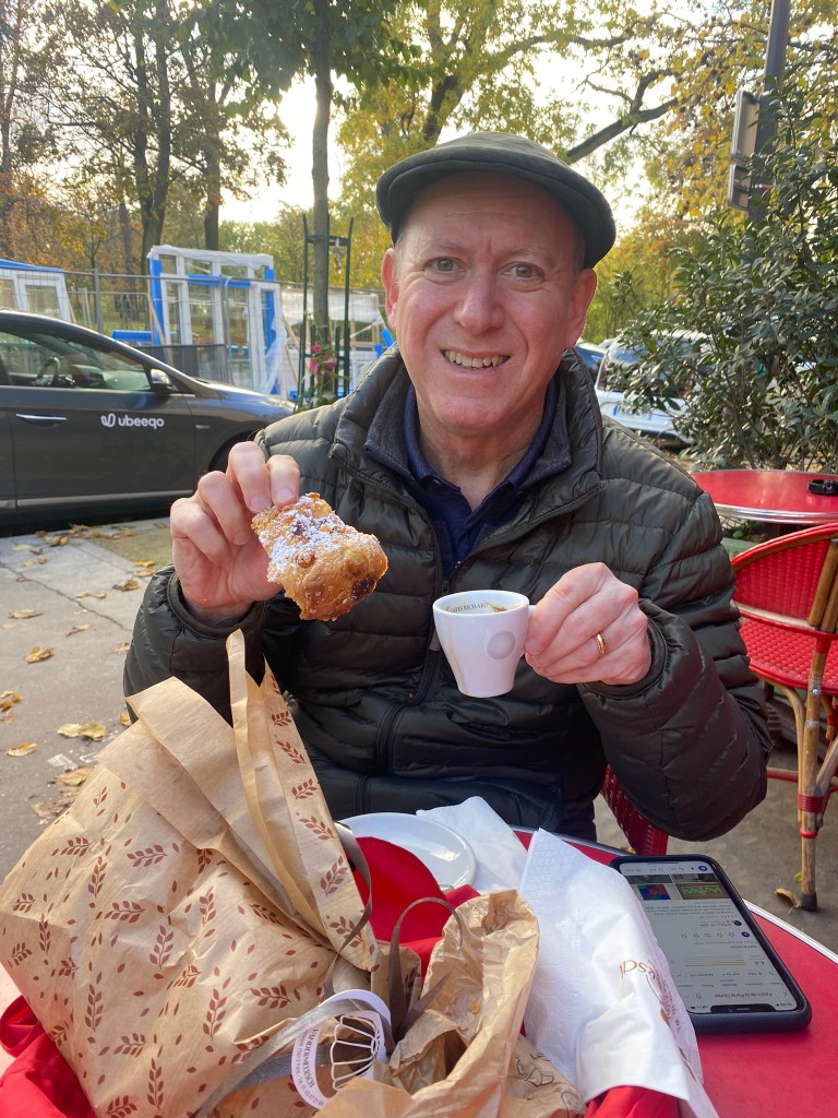 While I am on the subject of food, I must share Andy’s childhood memory of Sunday afternoon coffee (and cake) at the Upper West Side NYC apartment of his Hungarian Nana, complete with delicious kouglof (or kugelhopf) from Lichtman’s (of blessed memory), the Hungarian bakery on the UWS (founded by the grandparents of our friend Beth Nabi). A recent article in David Lebovitz’s blog sang the praises of “Vandermeersch: King of the Paris Kouglof” so naturally, we had to find it. We schlepped to the edge of Paris (Lebovitz called it “the middle of nowhere” ) and immediately ran into my long lost babysitter Catherine, who pointed us in the right direction. And yes, it was divine!