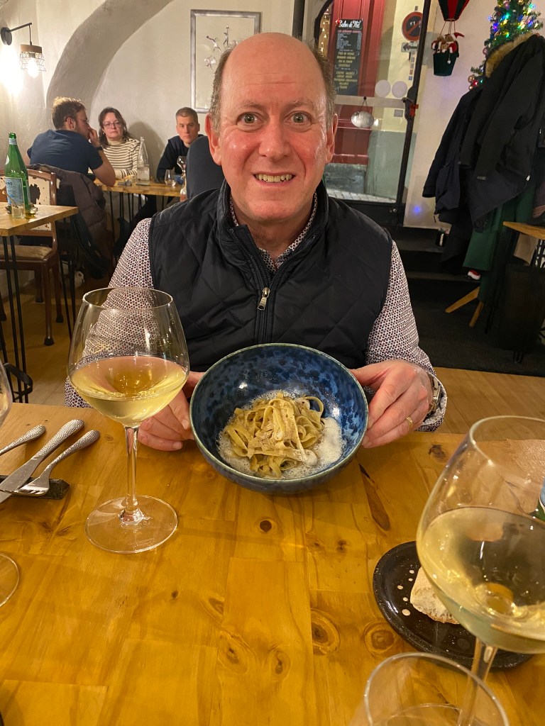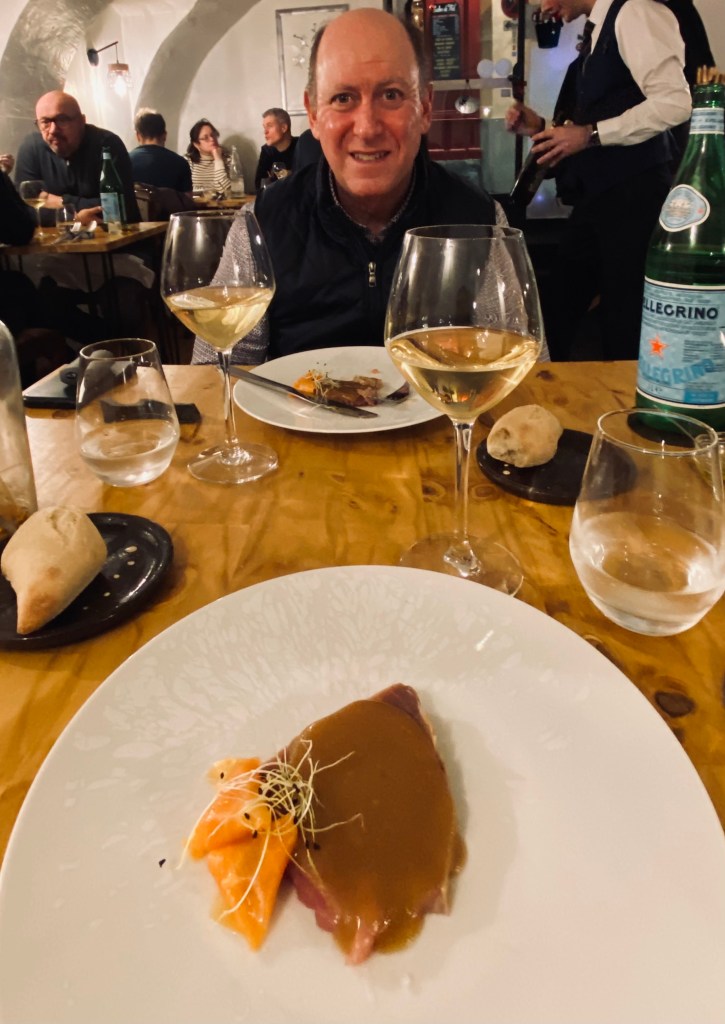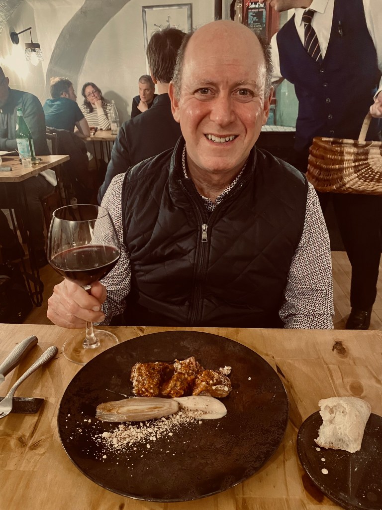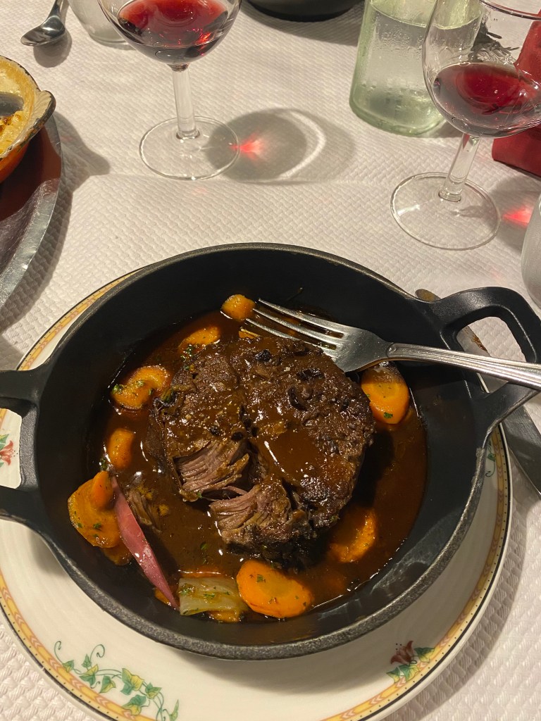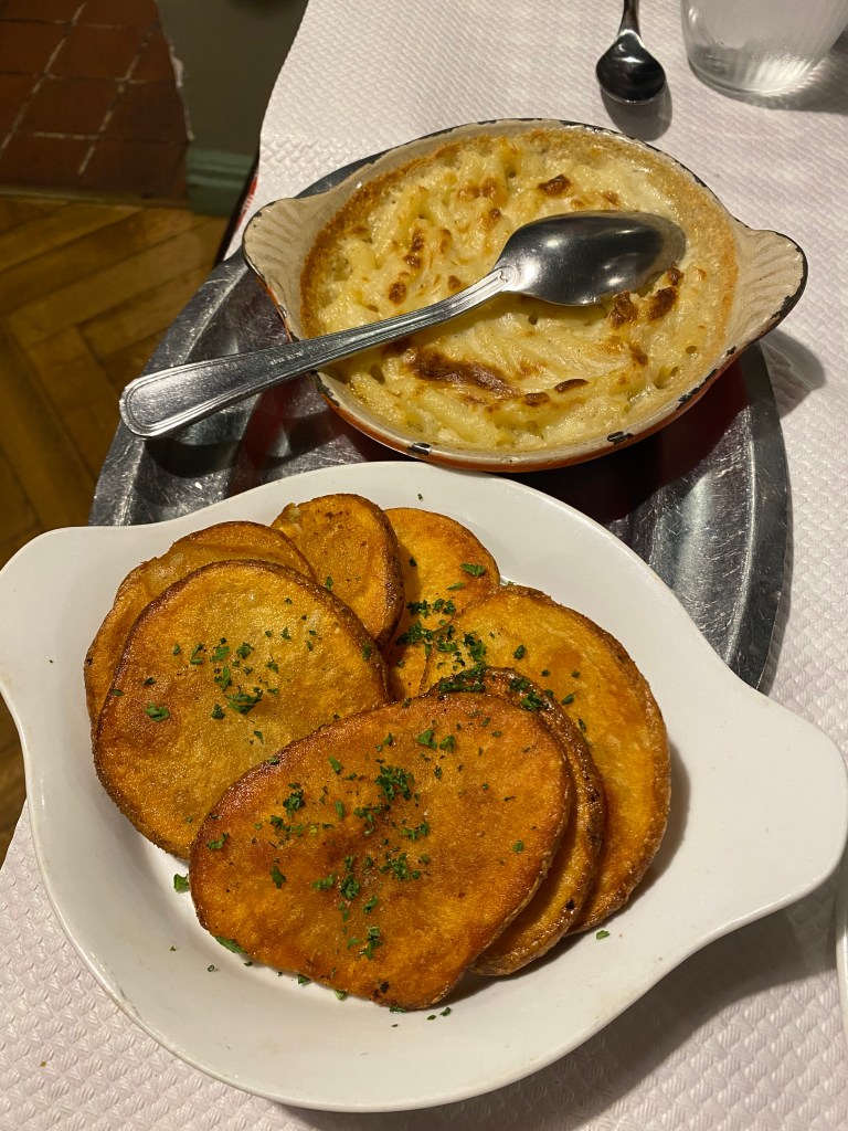 Not realizing that we would be Bouchonning it for lunch, we had made a reservation for, that’s right, a Bouchon dinner. We had a fun meal at Daniel and Denise. I ordered the terrine — a venison 😱 pâté with a lovely jam (normally, I would never go near venison but I ordered it because the jam sounded good; alas my plate had only a teaspoon’s worth of jam).