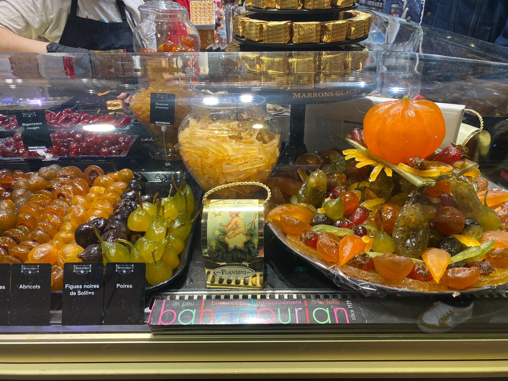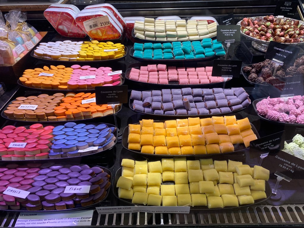 After this hearty lunch, we were introduced to the budding coffee culture in Lyon (thank you Starbucks) where one is no longer scoffed at when requesting milk in one’s coffee after breakfast (I now order a flat white). We enjoyed coffee and a delicious Coussin de Lyon, a cushion of green sugared marzipan with a chocolate ganache center.