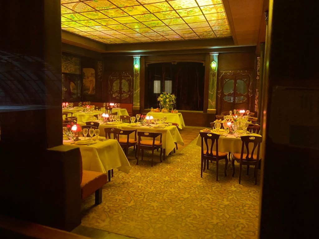 Our subsequent meals were on the nouveau theme of Lyon. On Saturday we enjoyed cocktails at Le Dome, followed by a fabulous dinner at Le Boeuf d’Argent, back in Vieux Lyon. We chose the tasting menu, each course paired with a different wine. Well, that works for most people but not for me. Our generous waiter had a heavy pour and at the end of dinner, none of my wine glasses were finished. That said, my plates were clean and we complemented the chef when he did the rounds at the end of the evening.