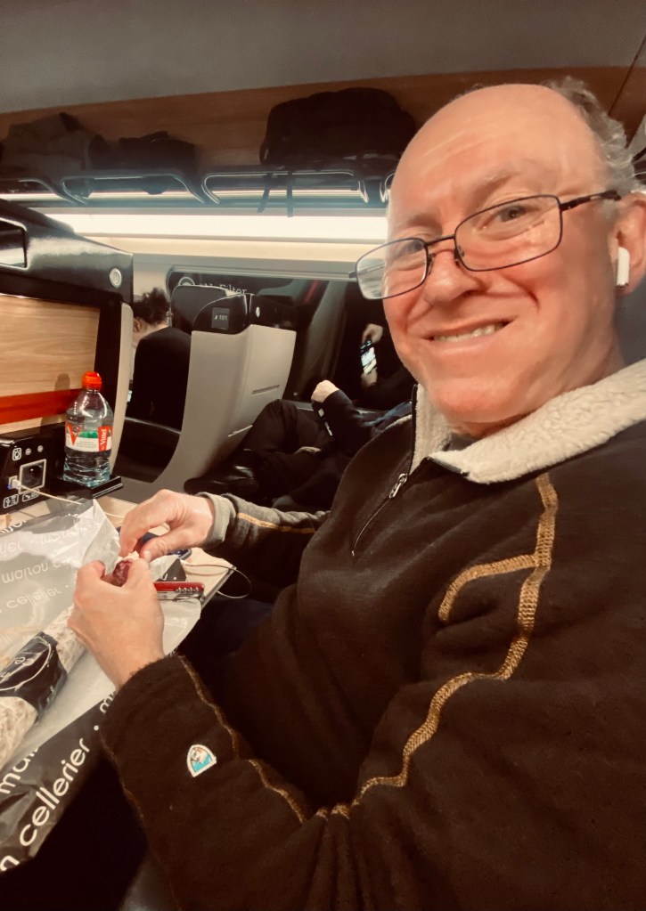 We also enjoyed the specialty food shops in Vieux Lyon but when staying at a hotel, one cannot buy everything one sees food wise — no kitchen (One of the best parts about our Paris stay has been apartment living; we have tried many specialties of France in our temporary home). We enjoyed visiting a truffle store (everything you can imagine bottled into a truffle delicacy) and bought a spread to enjoy in the future and once again, we Americans struck up a conversation with a Lyonnaise about the emerging French coffee culture. Andy did enjoy the salami he bought at Les Halles Bocuse for the train ride back to Paris!