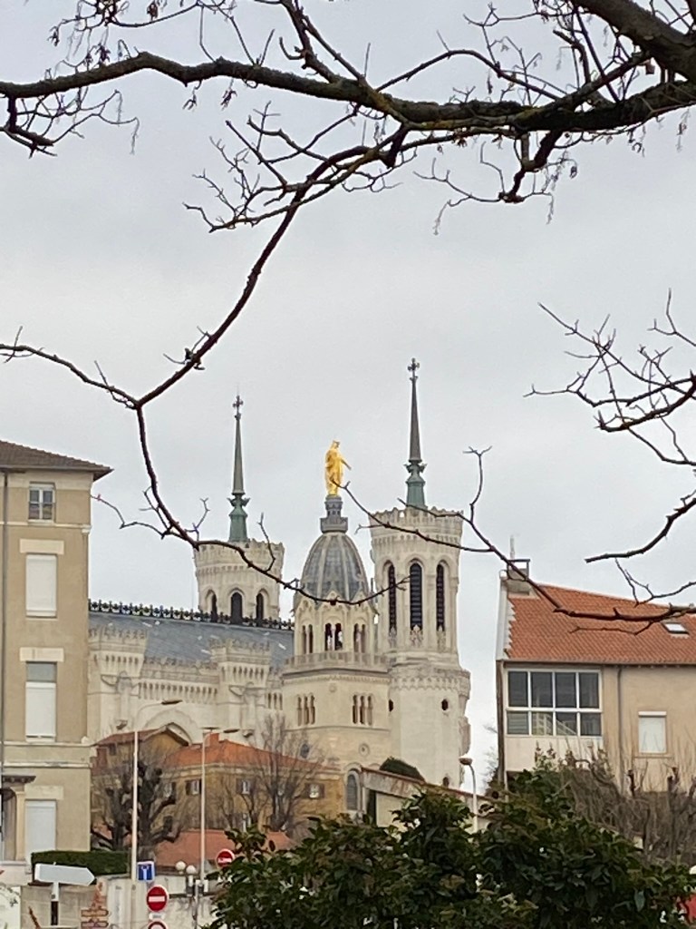 We spent a lovely weekend in Lyon. When I say lovely, I really mean it. We have not had three days in a row without rain in weeks and the weekend weather was great. We enjoyed crisp mid-December temperatures, nice weather in which to walk around. Lyon sits at the point where the Rhône and Saône Rivers meet. The parts of the city we visited were Vieux Lyon, the Presqu’île (almost an island, or the peninsula between the two rivers) and the east bank of the Rhône River.
