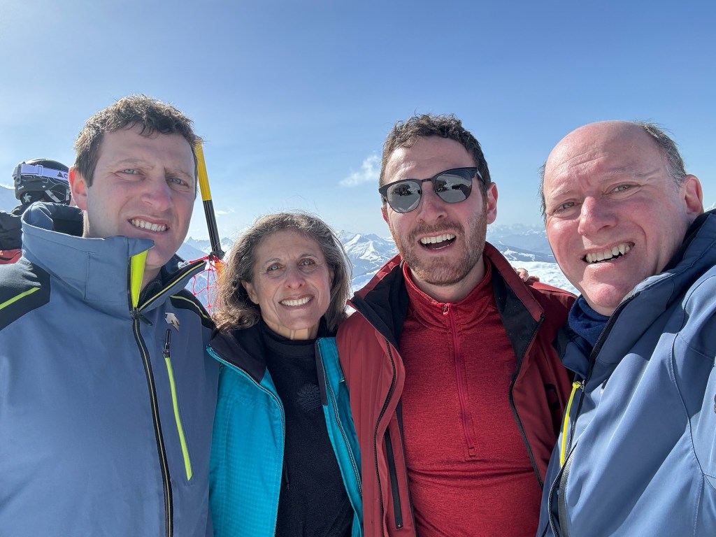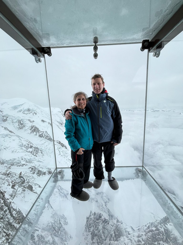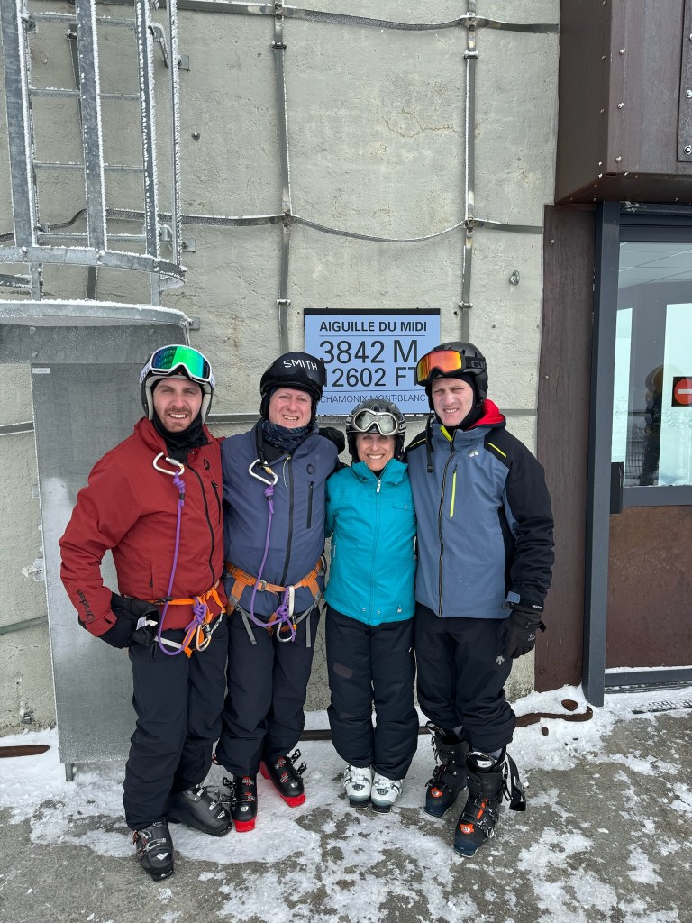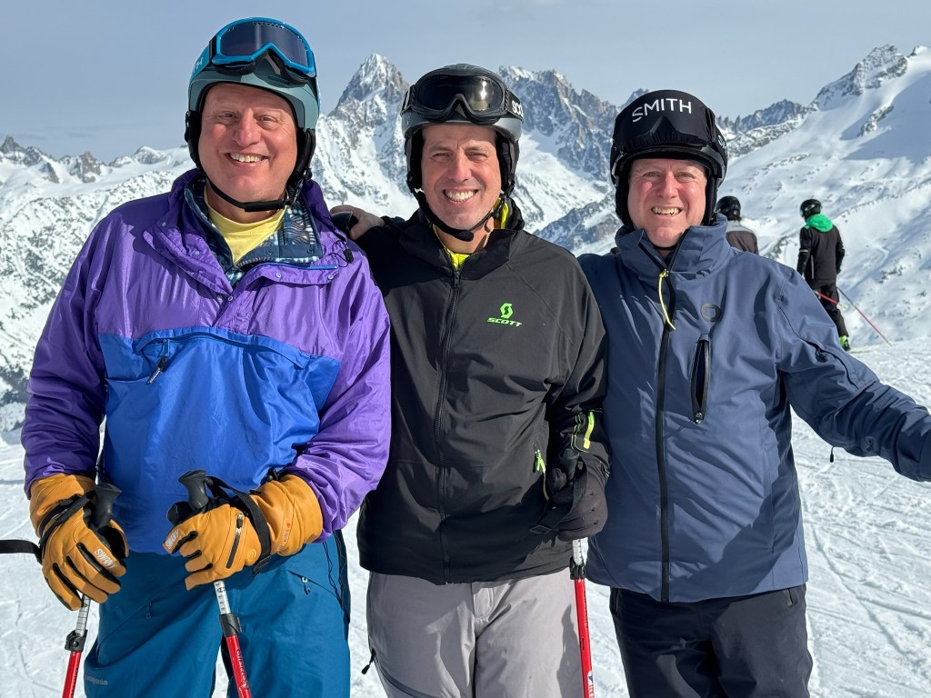 This past week, we have enjoyed the company of our “boys,” George (28) and Matthew (24). They saved their vacation days to be with us and it has been a joy to have them here. While I have been skiing for 55 years and getting slower with each year, George and Matthew have only gotten faster. They are so comfortable on skis. I can thank my father, George Taback, for putting me on skis in 1969 and Andy, for agreeing to make ours a ski-family. No, there have not been many beach vacations for us Frankles. Together, we skied different mountains each day but the highlight of our alpine adventure was our guided day in the Vallée Blanche, the largest glaciated domain in the Alps, the Mont Blanc massif.