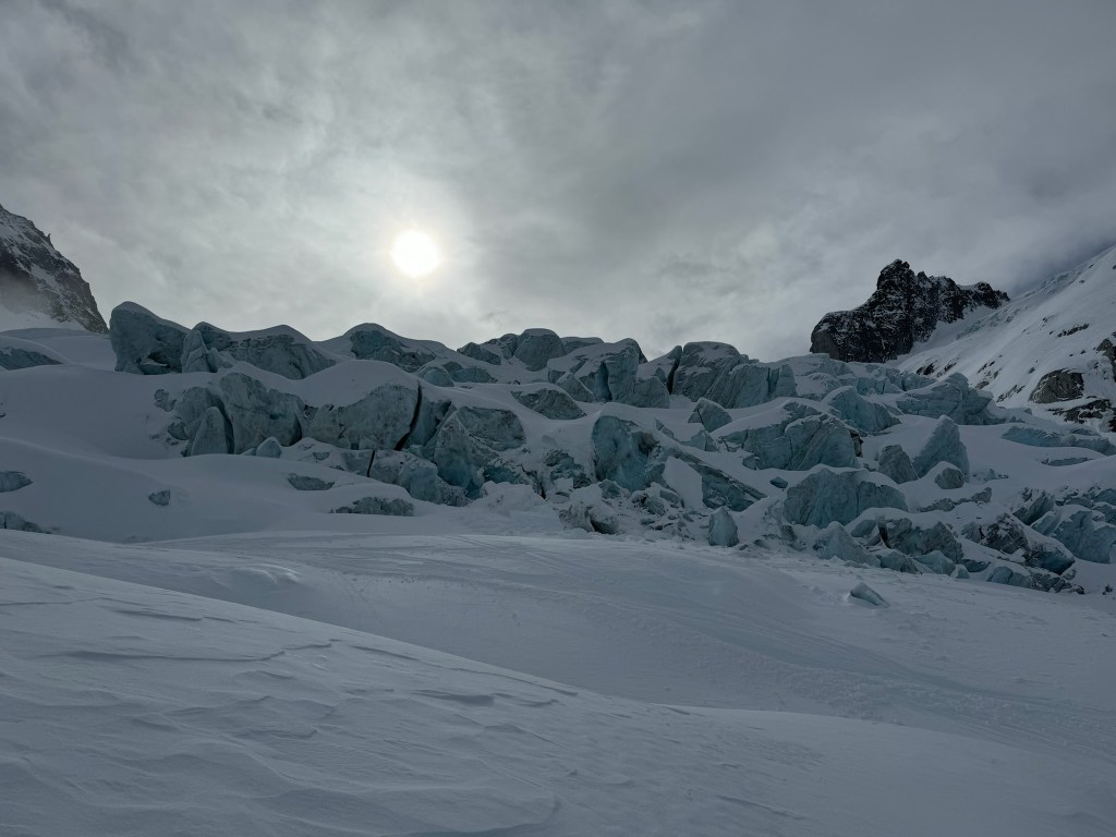 “We passed the glacier safely and began to mount the steeps beyond, with great alacrity. When we were seven minutes out from the starting-point, we reached an altitude where the scene took a new aspect; an apparently limitless continent of gleaming snow was tilted heavenward before our faces. As my eye followed that awful acclivity far away up into the remote skies, it seemed to me that all I had ever seen before of sublimity and magnitude was small and insignificant compared to this.”