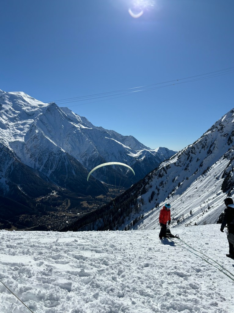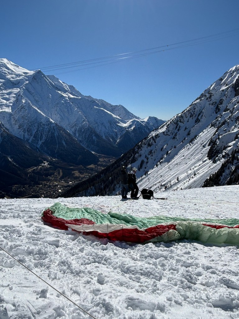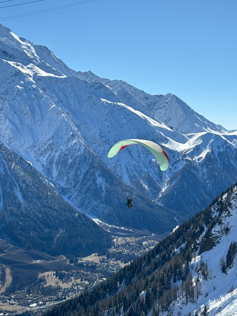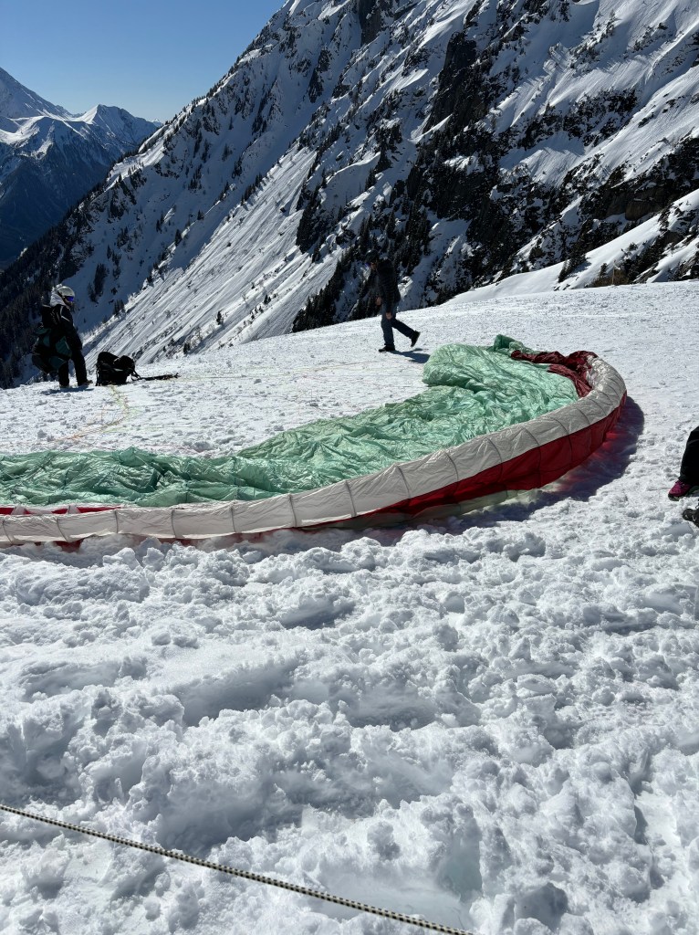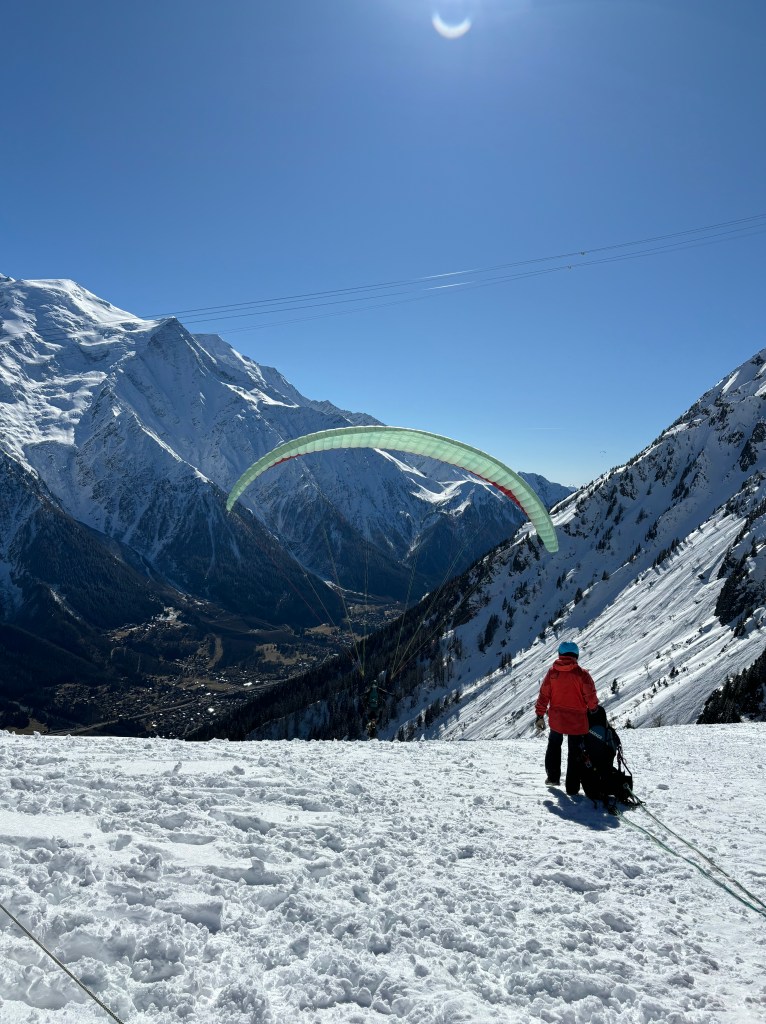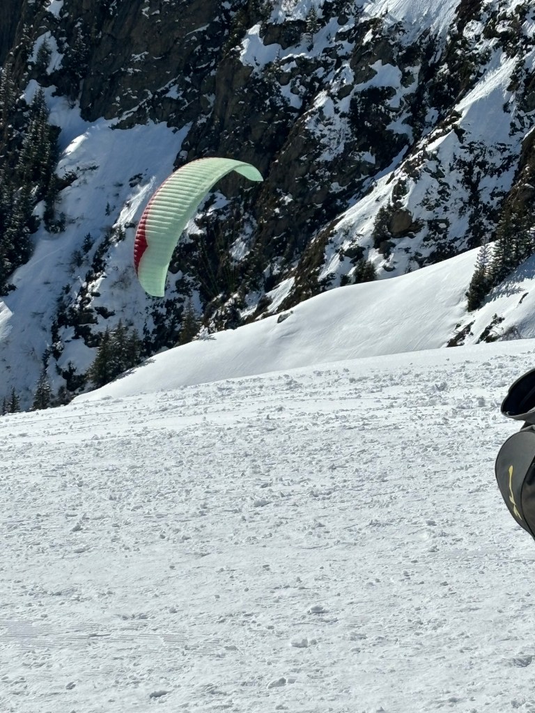 I love ending a bluebird ski day, watching parapente prep and take off.
