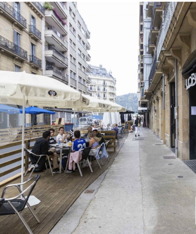 San Sebastián – tourism. The city we are enjoying is the perfect tourist spot. The beaches that reach out to the Bay of Biscay are accessible to all. No wonder Spanish royals and Caudillo Franco came here on holiday. Queen Maria Cristina (1858-1929) built a beautiful home here and spent forty summers in San Sebastián. She was known as the “Honorary Mayoress” and helped popularize the city. Today, San Sebastián is filled with tourists who enjoy the beaches and there are many pedestrian streets (lots of shopping). And like many European cities, there is a strong bicycle culture. Our first bike excursion took us 26 miles, to and from Arditurri National Park. The weather is much cooler than I expected (that has not stopped the sunbathers) and as with many coastal cities, rain comes and goes (in other words, don’t believe The Weather Channel). There is a very lively bar scene with indoor and outdoor options where local beer and wine are enjoyed (not much of a cocktail culture here).