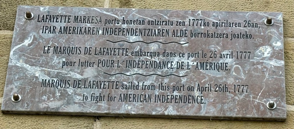 We also found a great little bike shop while wandering near our apartment. Our new friend Mateo rented us the perfect hybrid bicycles to enjoy for a week. We had a great ride on Monday (no rain!). Our first adventure was on well-marked bike lanes and included a short ferry ride before we ascended to Arditurri National Park, in Gipuzkoa, with its Roman Mines. The ferry crossing was very nice and it took us to the Old Town of Pasai Donibane where we were surprised to learn that Marquess of Lafayette, in 1777, left from there to help the Americans in the War of Independence. We also saw a house where Victoria Hugo stayed in 1853. Who knew?
