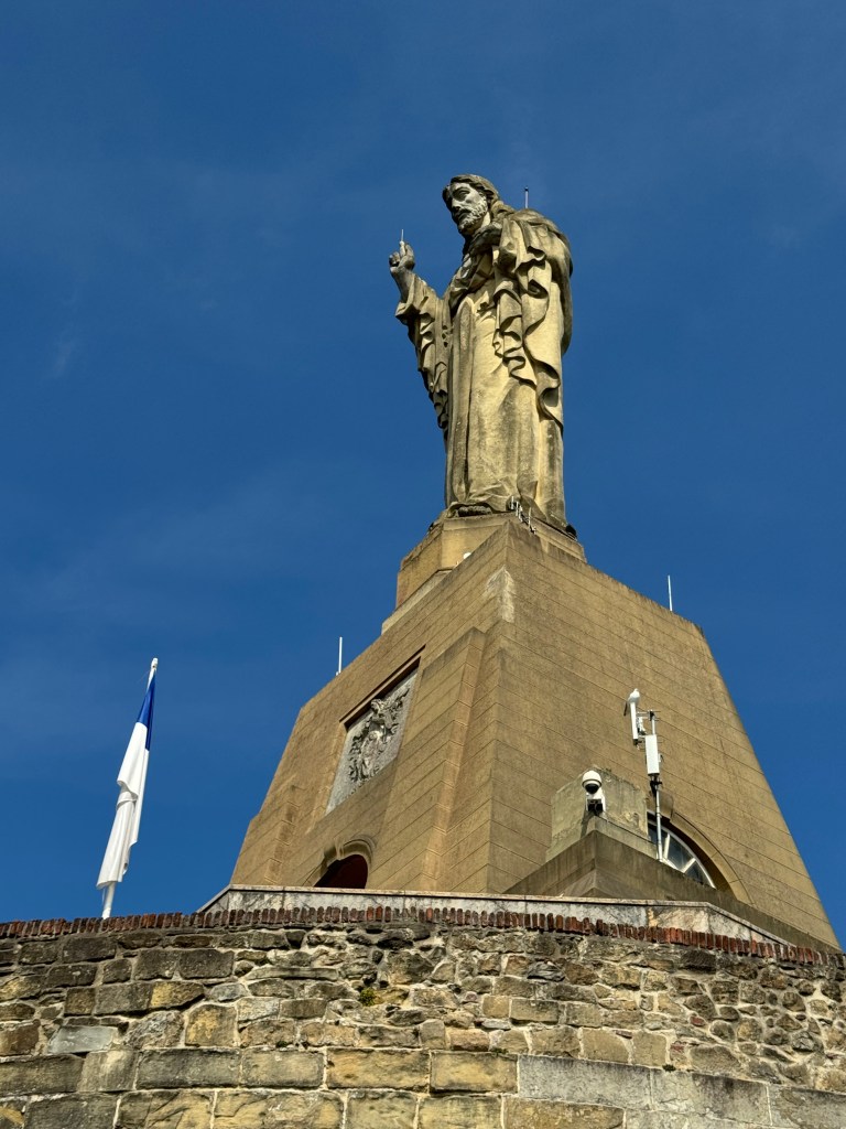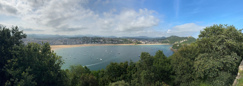 We have hiked up to Castillo de la Mota, a fortress from the 14th century on Monte Urgull. It’s supposed to be tranquil with great views. Yes on the great views. We could see the calm and protected Playa de la Concha and the fabulous waves surfers enjoy from Playa de la Zurriola. But we were joined by a group of schoolchildren (they were fun to watch but not at all tranquil).