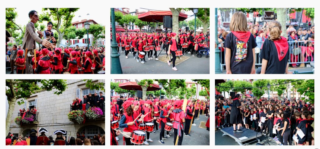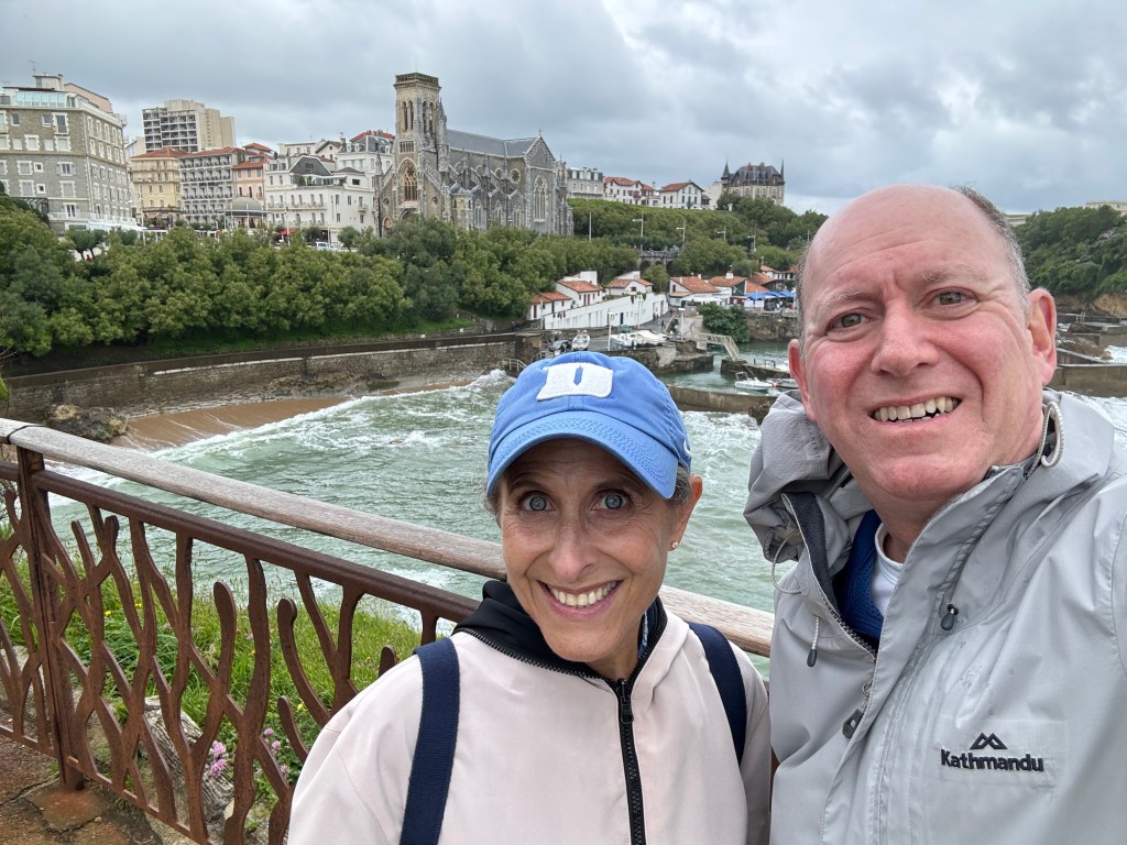 We rented a car to cross over to our beloved France, following the Bay of Biscay north. Our first stop was the quaint town of Saint Jean de Luz. How lucky were we (to find a parking spot). Streets were closed and almost everyone was dressed head-to-toe in black but for the bright red scarf around the neck. Turns out we visited during the four day festival celebrating Saint John (John the Baptist) as well as the summer solstice: Luzien musicians performing, races running, and dancing in the streets. These were just a few of the activities we witnessed. Had we only known in advance (we were underdressed for the occasion). We enjoyed watching the kidsβ running race and the festivities from one of the very busy cafes on the main square. From there we continued on to Biarritz, another beautiful resort town with fabulous beaches and scenery, even on freezing cold, windy and rainy days, which is what we experienced there.