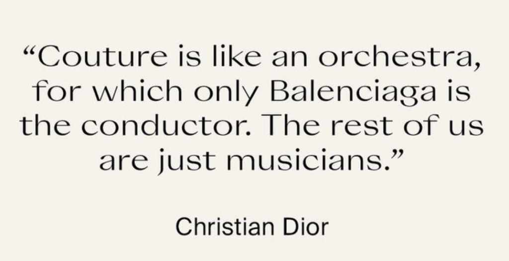 We in the apparel industry often say we went into the business because it was in our blood (so I guess thatβs what Balenciaga and I had in common). CristΓ³bal Balenciagaβs mother was a seamstress, employed in the home of the Marquesses of Casa Torres. By the time he was a teenager, Balenciaga was designing dresses for the family of the Marquesses and at age 22, he opened his first business; the word was out. In 1938, Balenciagaβs couture house premiered in San SebastiΓ‘n. He relocated to Paris amidst the Spanish Civil War (1936-39) but maintained a line called Eisa in Spain. The House of Balenciaga suspended operation during World War II, although it has been reported that Balenciaga benefited from his relationship with Franco (he dressed some Franco women) who was an ally of Hitler but Balenciaga himself claimed that he refused Hitlerβs offer to relocate his design House to Germany during the war. In 1949, Balenciaga was able to reopen and began to transform fashion. His creations were stylistically different from Christian Diorβs New Look of 1947 and Dior revered Balenciagaβs work, pronouncing him, The Master of us all. Hubert de Givenchy referred to Balenciaga as the architect of Haute Couture and Coco Chanel is quoted as stating Balenciaga was the only true couturier.