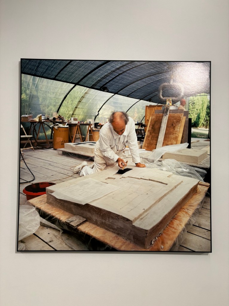 The Chillida Ianean exhibition: It seems the sculptor Eduardo Chillida (1924-2002) is everywhere in Basque Country. This was Chillidaβs home and 2024 marks the one hundredth anniversary of his birth. One of the galleries at the Tabakalera was devoted to Chillidaβs work through the lens of photographer Jesus Uriarte. The two artists developed a rapport beginning in the early 1980βs, when Uriarte began to shadow Chillida and this exhibit highlighted their relationship, focusing on the sculptorβs work in paper, earth, steel and concrete.