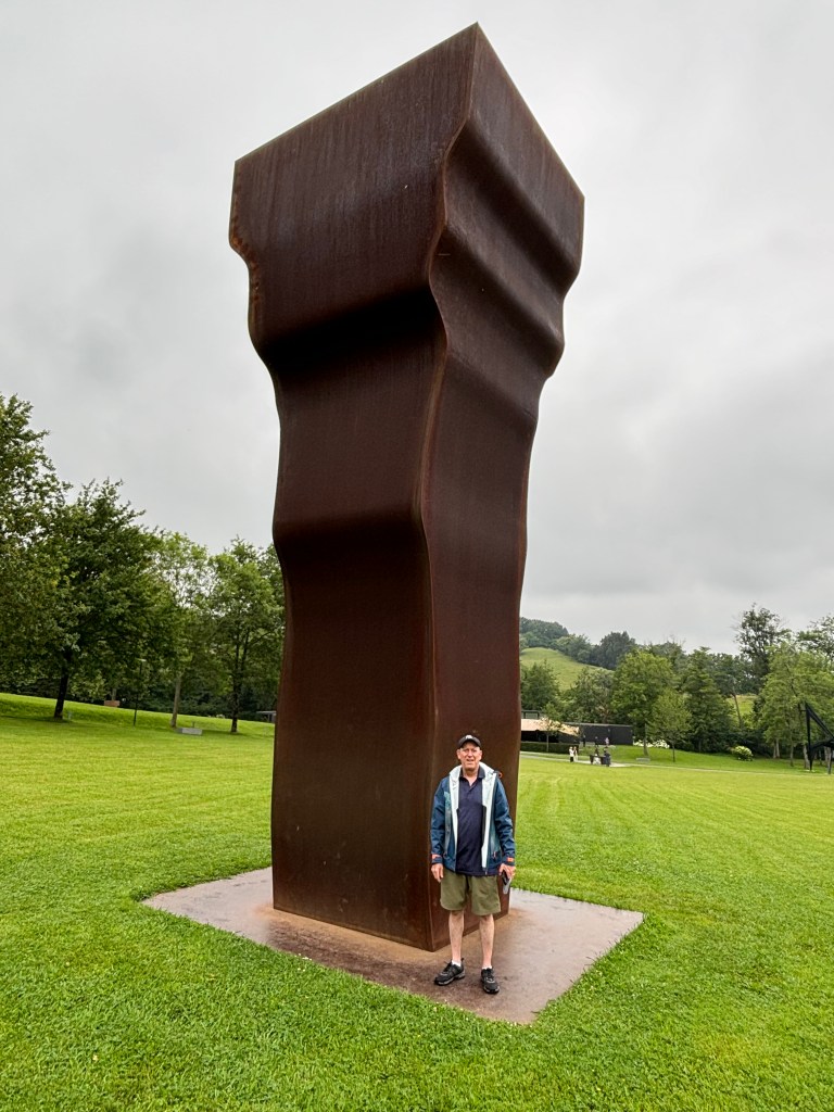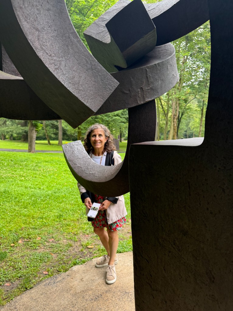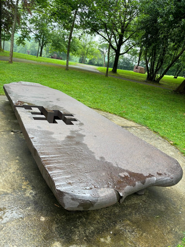 This was our fifth experience with this famous son of Donostia and we thought we knew him pretty well by now. To see his work in this natural space was amazing. I loved walking around to see each installation from different vantage points. The words I wrote to describe the experience include serene, quiet, contemplative. Some sculptures look incredibly light in spite of their weight. Some of Chillidaβs creations have been placed in wide-open spaces while others appropriately fit into more wooded areas. There are both smooth and raw surfaces; most exhibit both positive and negative space, concave and convex balanced.