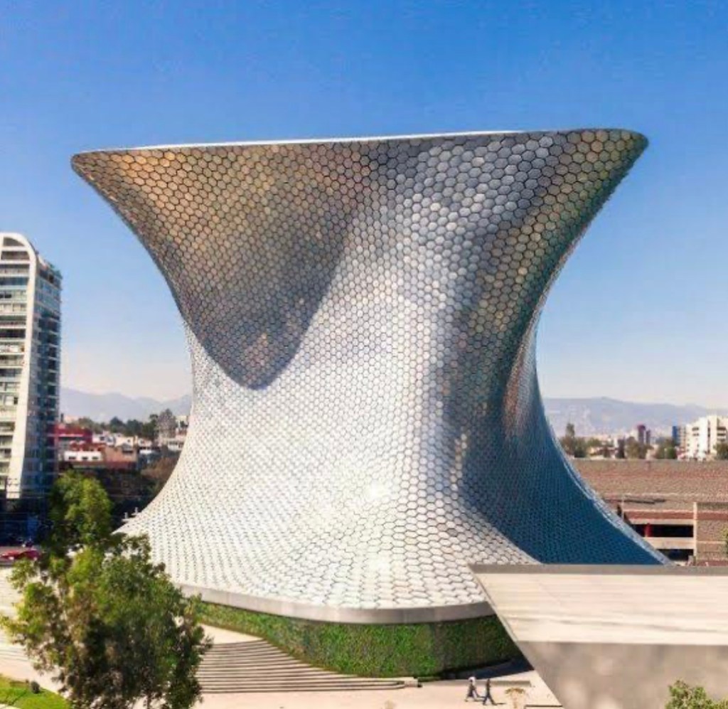 In Mexico City, most museums and tourist spots are closed on Mondays so Janet and I ventured to the lovely neighborhood of Polanco, to the open Museo Soumaya. Soumaya houses the huge private collection of Carlos Slim Helu and is named for his late wife Soumaya Domit Gemayel. Slim, who immigrated to Mexico from Lebanon, is one of the wealthiest people in the world. Slim commissioned his architect-son-in-law Fernando Romero to design the building, a six-story building with a shiny exterior of 16,000 hexagonal aluminum tiles. The museum opened in 2011 and is open to the public, housing 66,000 pieces of art. We especially enjoyed the gallery dedicated to Mexican art, although there was a lot of European art through the ages, including an area devoted to Auguste Rodin (which didn’t seem to be available the day we visited). The Modernity: Art and Technology Collection was very interesting.