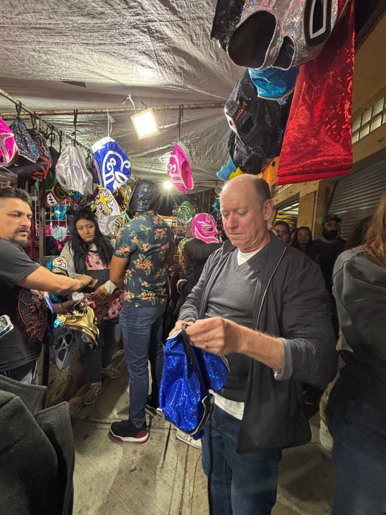 Outside the arena, team masks are sold and many audience members were in costume to root for the “faces” (the good guys) or the “heels” (not so good). The question is, are these matches fixed or “worked” or not? Maybe a little bit of both. The traditions of Lucha Libre go back to the days of carnivals and vaudeville. The competitors interact with the audience and their tactics are brutal and high-flying, using the ring’s ropes to hurl their bodies towards their opponents. The matches we saw were crazy with three-on-three, midget wrestling in full costume, teams of women and an actual championship round with an American named Flip Gordon who won his match against Villano III Jr. to win the CMLL (Consejo Mundial de Lucha Libre) World Historic Middleweight Title. Feel free to search for a good look at this match on the internet. Check that box – as much as this is a Friday night family tradition in Mexico, our group of five definitely checked the box and do not have to have a Lucha Libre repeat experience.