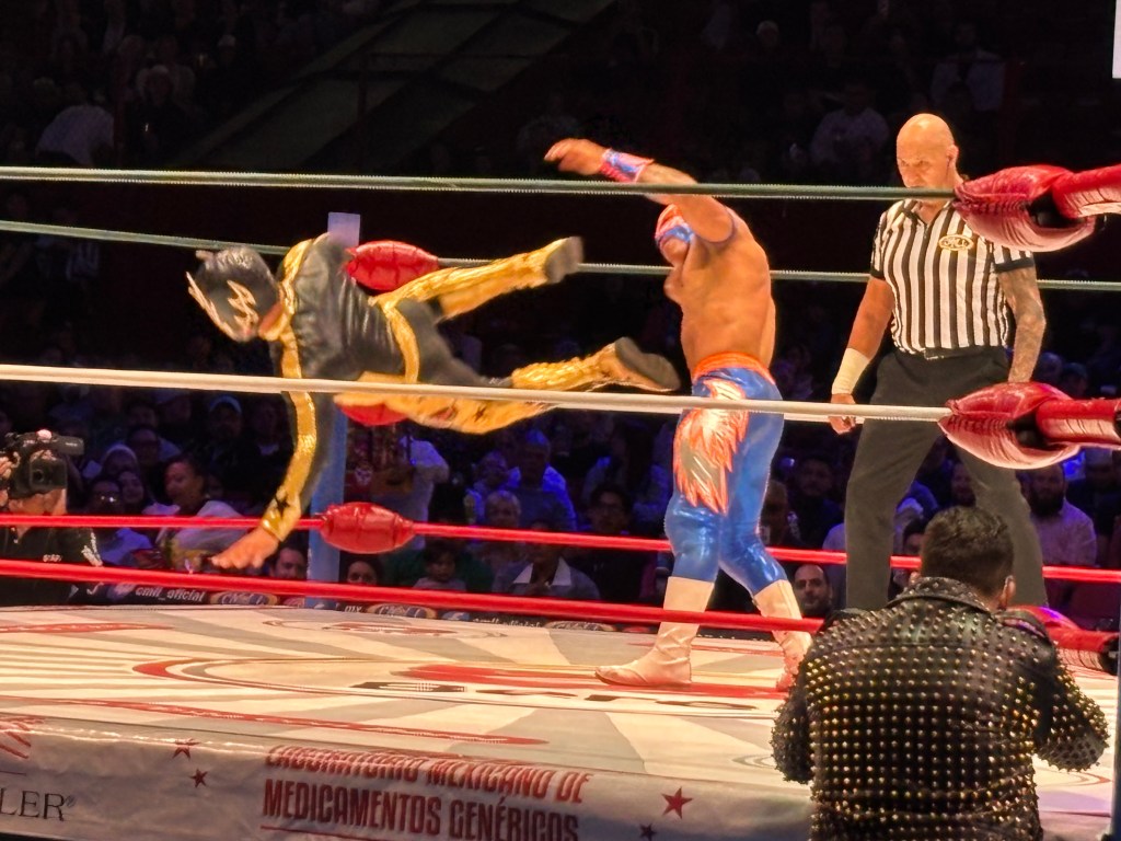 Neither did Friday night’s experience: dinner and then Lucha Libre. Also known as Friday night wrestling, Lucha Libre is quite the experience. The Arena México, also called the “cathedral of Lucha Libre” seats an audience of 16,500. Wendy researched best-seats, which we had, close enough to see every expression on the participants (those who weren’t masked, that is) and in view of the ESPN-looking play-by-play analysts who could be seen on Pay-Per-View.