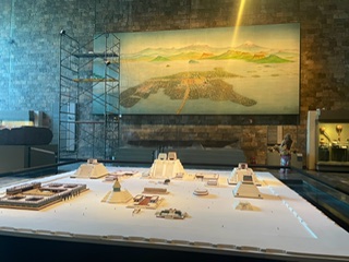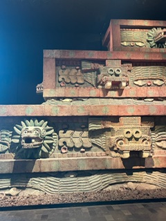 While Mexico City boasts many, many museums, its most famous is the Museo Nacional de Antropología (MNA) which is one of the museums on the grounds of Chapultepec Park. I have now been to MNA twice (and I am certain I will be there again). This huge museum was built to house thousands of artifacts and reproductions that tell the story of Mexico from prehistoric to Mesoamerican to Spanish colonialism to current times. The space includes both interior and exterior exhibition spaces which surround an exterior courtyard with a huge concrete column “umbrella,” holding a giant ceiling. I was surprised to see many ancient artifacts that resembled Egyptian art, although there is no proof that these two ancient civilizations had any interaction. I was also surprised to learn about the Mesoamerican practice of human sacrifice to please their gods. Mostly, the contents of this museum (and I have only scratched its surface) are incredible and beautiful and show how much interaction occurred among the different indigenous cultures of Central and South American.