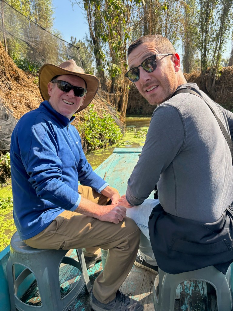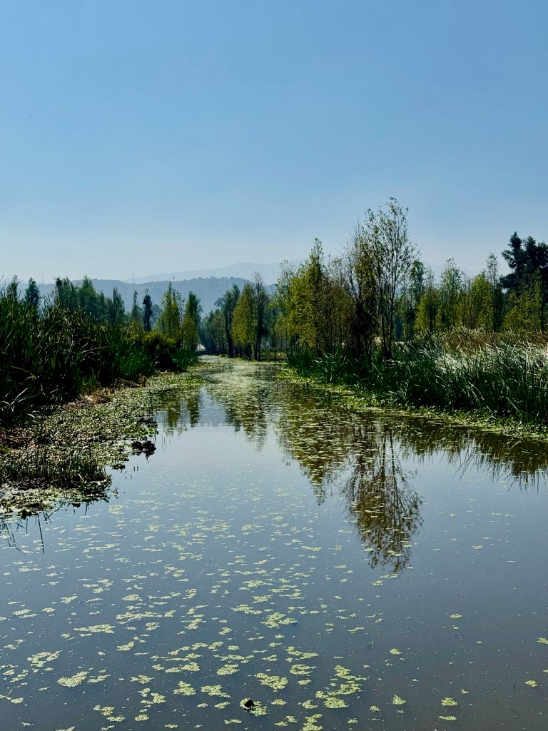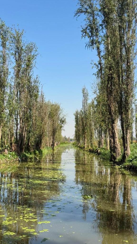 On George’s final day with us, we took the advice of Arlene and Wendy and arranged a tour of Xochimilco. Thank you Wendy for suggesting the Pre-Hispanic Floating Gardens / Traditional Celebrations tour with Sergio, a fantastic guide who shared his love of the land, its produce and especially its people. Most of these tours are on party boats but we explored the agricultural Eco-reserve Xochimilco with Sergio who drove us right past the colorful party boats to the town of Altapulco. Our tour’s purpose was to experience traditional farming methods in the area, learn about the people, the culture and sustainability. The floating farms are built from layers of grass; they are bordered by canals that have existed for generations. We were guided through farms of produce and a local friend proudly shared his fresh tamales with us. Soon after, we were escorted in a traditional wooden boat, by a local farmer and his family, through the canals towards Laguna de San Gregorio. This is the best example of Mexico City’s original landscape. Before the Spanish Conquest, the Empire of Tenochitlán was built on an island among five lakes. The Spanish filled in the water to expand the city and the damp silty landfill explains why Mexico City is sinking. Laguna de San Gregorio is the only lake left. We didn’t expect Sergio’s tour to be a tasting tour but there we were again, on the main street of Altapulco, sampling tacos and the most unique fruits. Sergio’s fruit vendor-friend proudly shared delicious samples with us. In the midst of this beautiful Saturday, there were parades, Communions and Quinceañeras going on throughout this small town, just like every Saturday. To quote Sergio, “Can you believe we are still in Mexico City?”