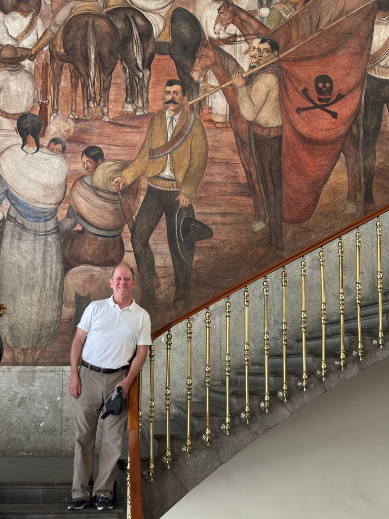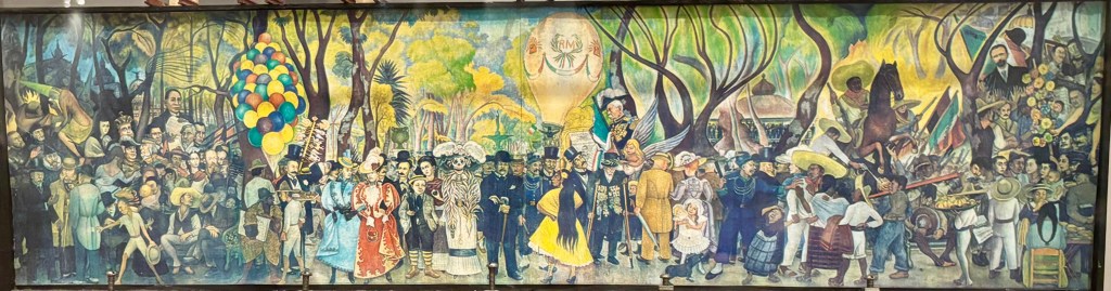 Since we are now well-versed in Mexico and its important contribution to the mural art form, Andy and I made sure to visit the Diego Rivera Mural Museum with one mural, Dream of a Sunday Afternoon in the Alameda Central (1947). This museum was created around this mural, which was moved to this location (a former parking lot) after it survived the 1985 earthquake. The Hotel del Prado, the mural’s original home, was destroyed but the mural survived and was moved to its new home, right next to Alameda Central, the mural’s namesake parque. Rivera captures the history of Mexico, from left to right, including a “who’s who” of Mexican history.