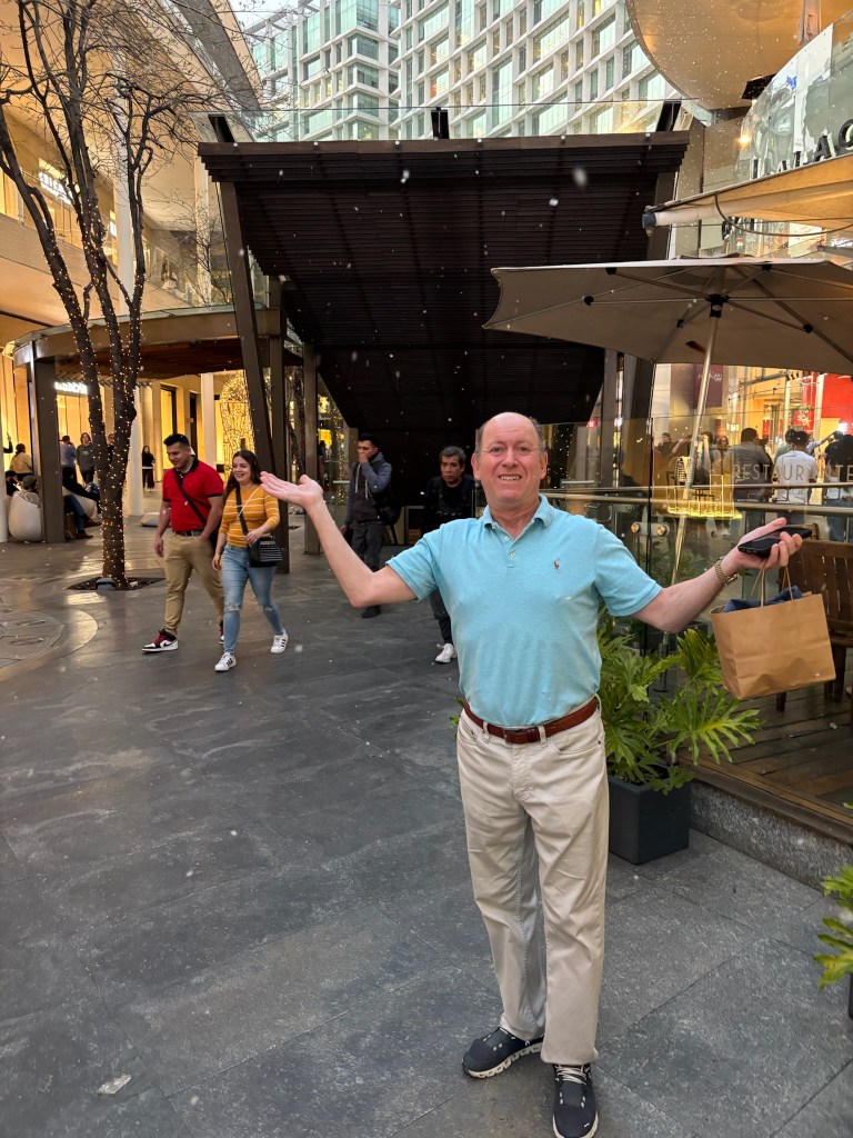 On our après-museum stroll, we took in Mexico City’s Christmas season. Since there is no Thanksgiving here, décor transitioned from Dia de Muertos, with marigolds and skeletons, to Christmas. Poinsettias replaced the marigolds and Christmas music and snow-themed décor is everywhere. I mention this to share that while we walked through an outdoor mall, it suddenly began to snow. We looked up and saw machines blowing snowflakes on us shoppers; it was about 70 degrees Fahrenheit! We continue to see our fair share of tacky Christmas sweaters here – feels a bit like home.