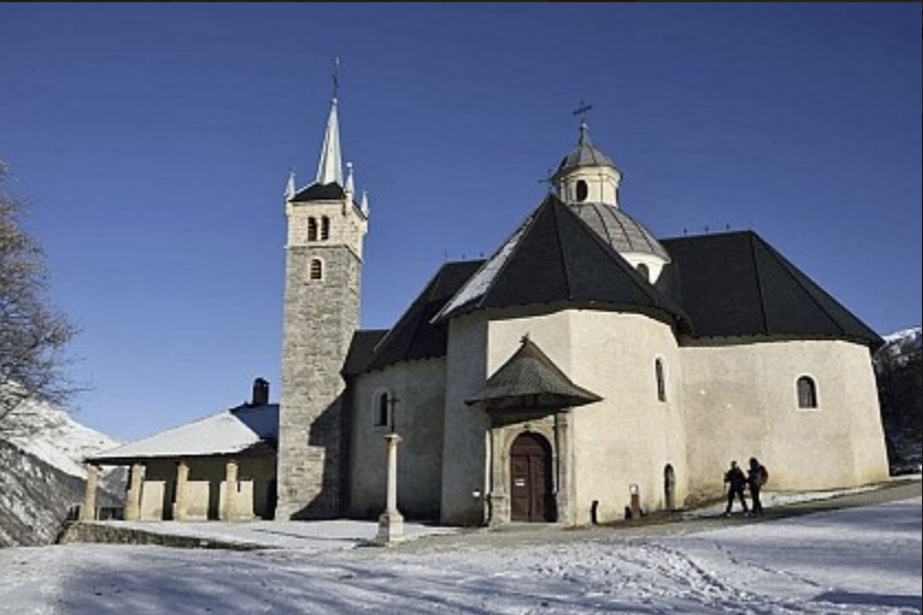 Andy and I began the day with a morning walk to our favorite patisserie, Chalet Alpain, adjacent to the gondola which we ride up on ski days. Often we end our day here so I can pick up a baguette to accompany dinner and croissants for the next morning. After breakfast our walk became a hike. On a previous stroll, we climbed up to the beautiful Baroque Notre-Dame-de-la-Vie (1633-1680), one of the most stunning churches in the region.
