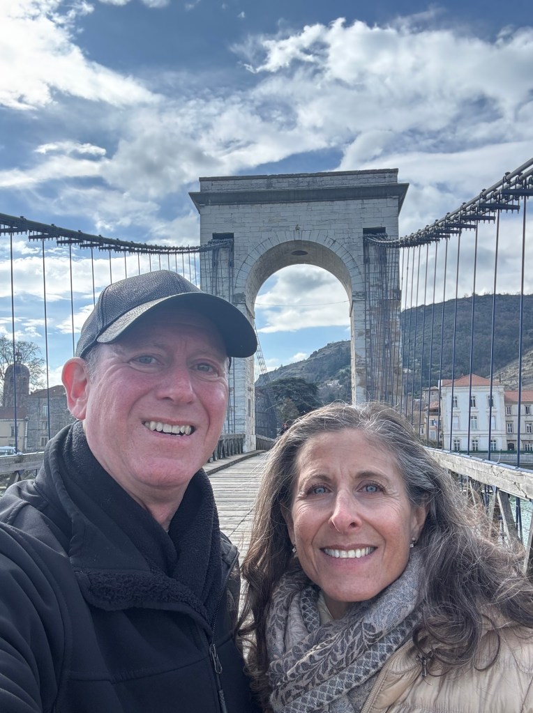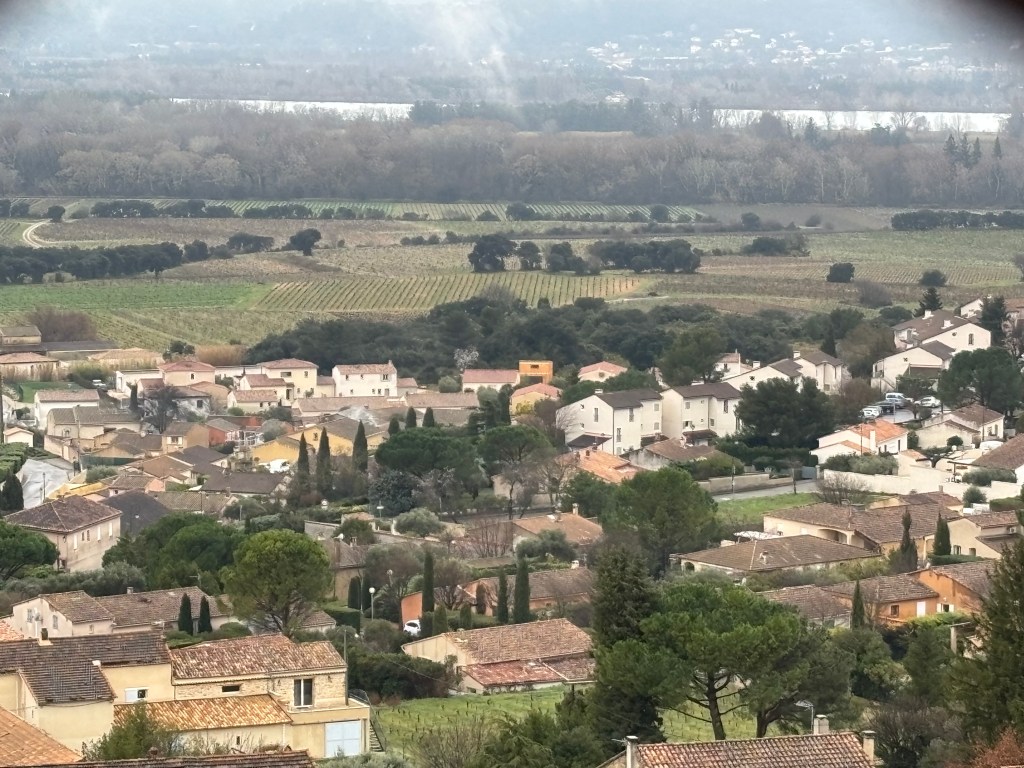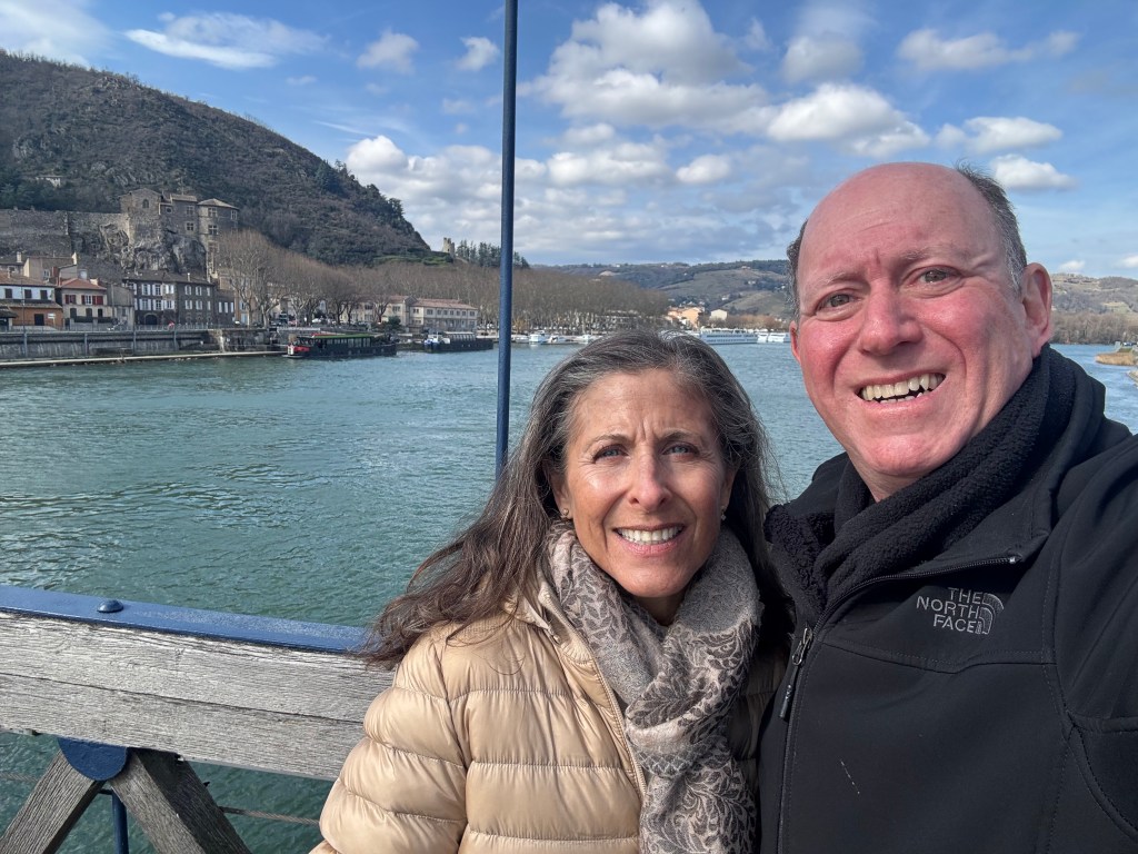 It was a stunning drive, from Alps to driving along the Rhône River, to rolling hills — filled with vineyards. Admittedly, I am not a wine connoisseur but Andy is the oenologist in our family. I found a nice review of the Northern Rhône Valley with hotel, restaurant and tasting recommendations; Andy researched Châteauneuf-du-Pape and off we went.