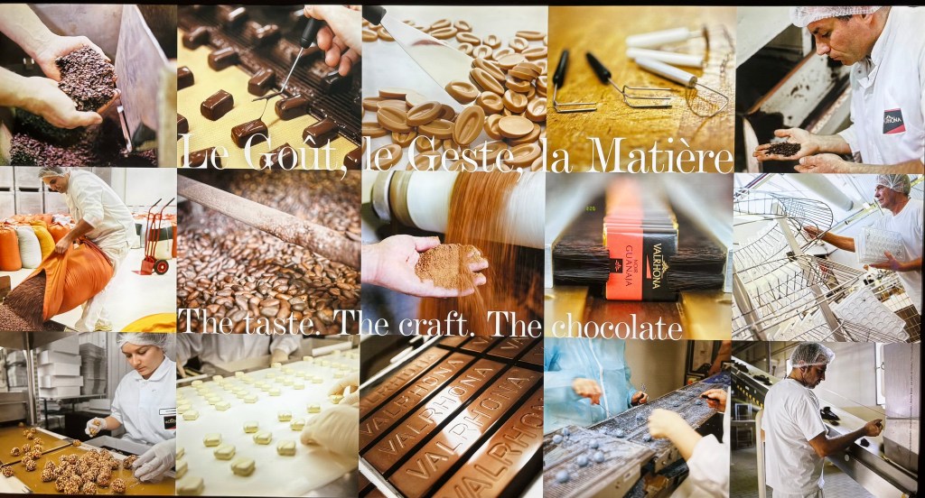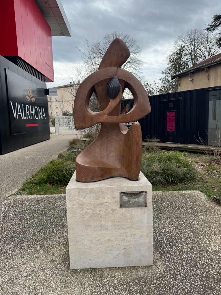 And here’s the bonus, at least for me it was. When we first drove into Tain l’Hermitage, we passed a complex of buildings labeled Valrhona (duhhhhh Rhône Valley). This is where France’s most famous chocolate has been made since 1922. Its campus also includes the École du Grand Chocolate (I want to apply) and the museum, la Cité du Chocolate. This was the perfect Saturday morning activity and as we approached the Valrhona factory, the aroma of chocolate surrounded us. With the purchase of a museum ticket, we enjoyed samples in each section of the museum, so many that even I had to put some away for later. This was the epitome of an experiential museum. We wove through many salons devoted to all aspects of chocolate making and there were many tastes and entertaining quizzes about chocolate along the way.