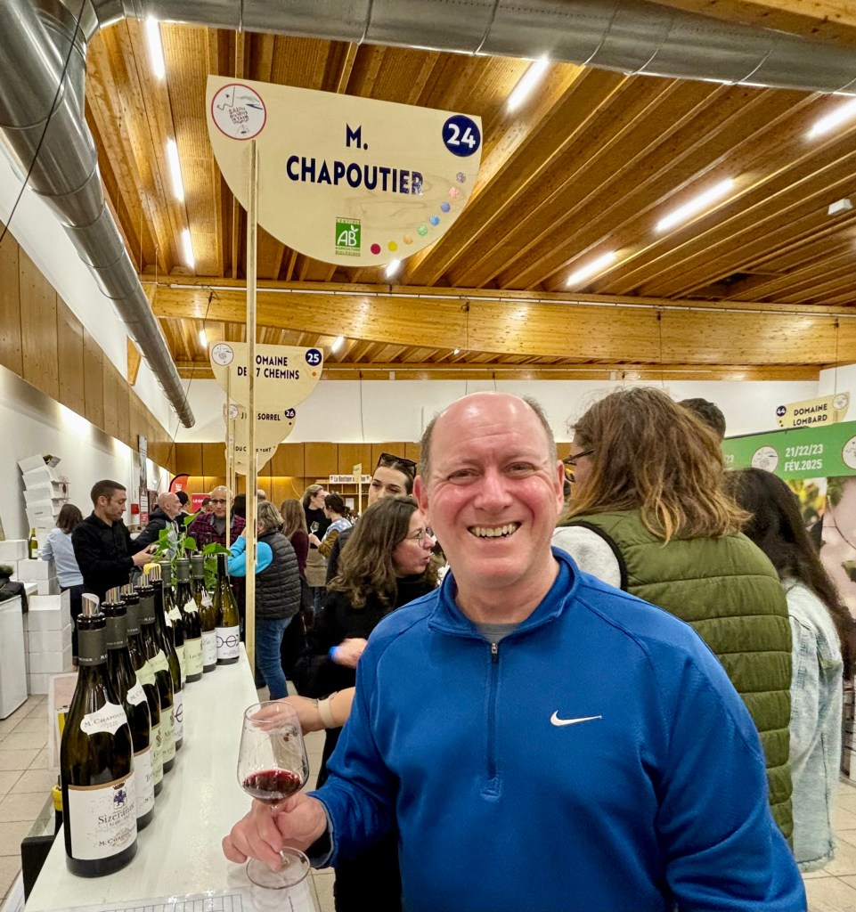 The Northern (Septentrionale) Rhône Valley is the land of syrah grapes. Our first stop was lunch in Tain l’Hermitage, a city with a population of almost 5,900 (most involved in wine or chocolate). The Rhône runs along one side of Tain and many hills of grapevines surround the area. We had lunch at Équipe Vineum, the restaurant of Domaines Paul Jaboulet Aîné (since 1834) and of course, our meal was paired with their organic wines. We also learned that the current owner and winemaker of Domaines Paul Jaboulet Aîné is Caroline Frey, who owns three French and one Swiss wine estates and manages every part of the complex process of viticulture and winemaking. And bonus, we received insider intel about a local wine fair, taking place all weekend: Salon des Vins de Tain l’Hermitage and added that to our itinerary (more about that later).